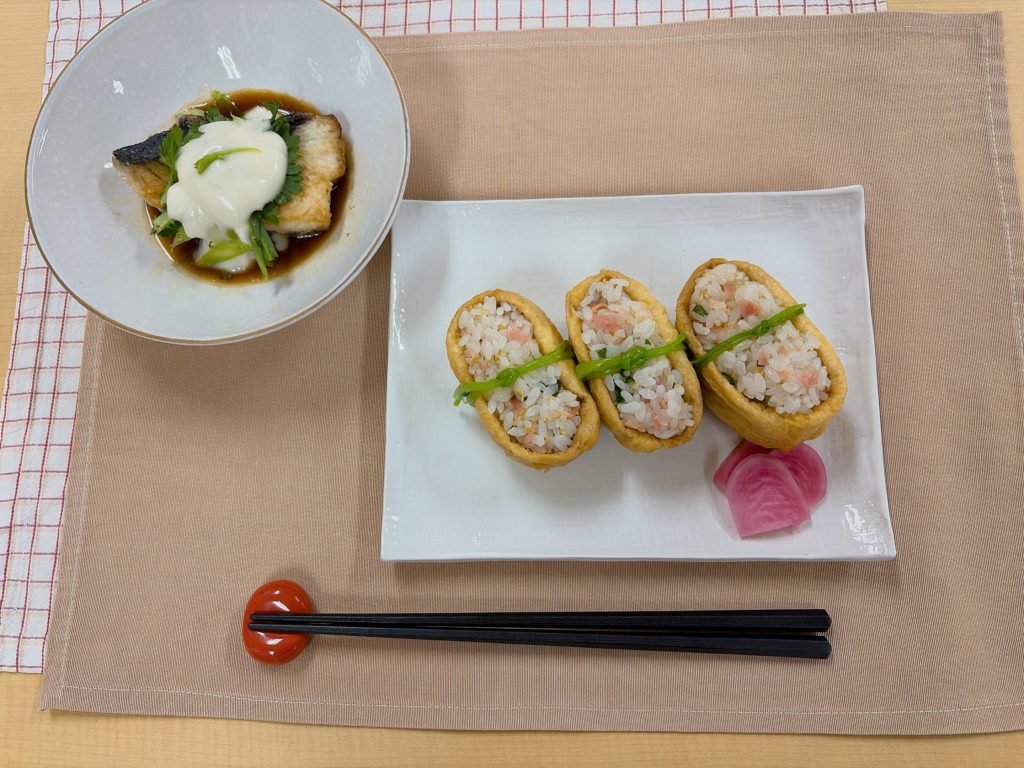 クッキングのメニューは「いなり寿司」「魚の揚げびたし 豆乳マヨかけ」です。